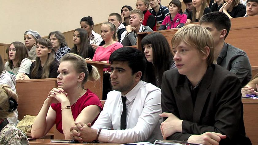 Студенты Сибирского федерального университета на открытии памятного барельефа, посвященного академику Л.В. Киренскому, Красноярск, 25 мая 2012 года.