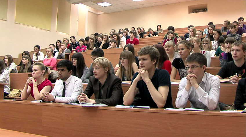 Студенты Сибирского федерального университета на открытии памятного барельефа, посвященного академику Л.В. Киренскому, Красноярск, 25 мая 2012 года.