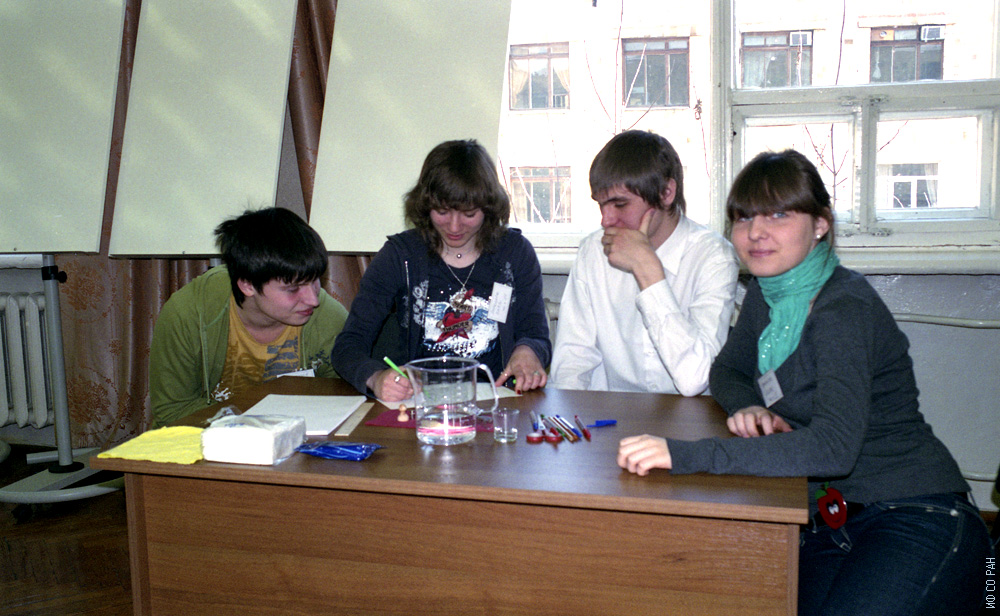 Команда гимназии № 16 (бывшая школа № 11). Участники научно-популярной викторины по физике среди учащихся школ Красноярска и Красноярского края, посвященной 100-летию со дня рождения академика Л.В. Киренского в поисках ответа, учащиеся гимназии № 16, слева направо: Латышев Роберт, Ковалева Екатерина, Павленко Дмитрий, Адрианова Мария в поисках ответа: «…все не так просто как кажется! фото 2009 г.