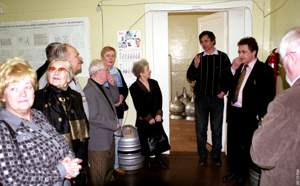Апрель 2009 года. В лаборатории радиоскопии и спиновой электроники Института физики им. Л.В. Киренского Сибирского отделения Российской академии наук (ИФ СО РАН) состоялась экскурсия журналистов-ветеранов Краснояска. Слева направо: Л. Комарова, Г. Шелудченко, В. Кузнецов, И. Шулинин, Л. Черепанова, Г. Вахменина, рассказывает Ю. Н. Иванов - старший научный сотрудник лаборатории, Н.В. Волков- заведующий лабораторией. «Нам в Институте физики все было интересно» - сказал один из гостей.