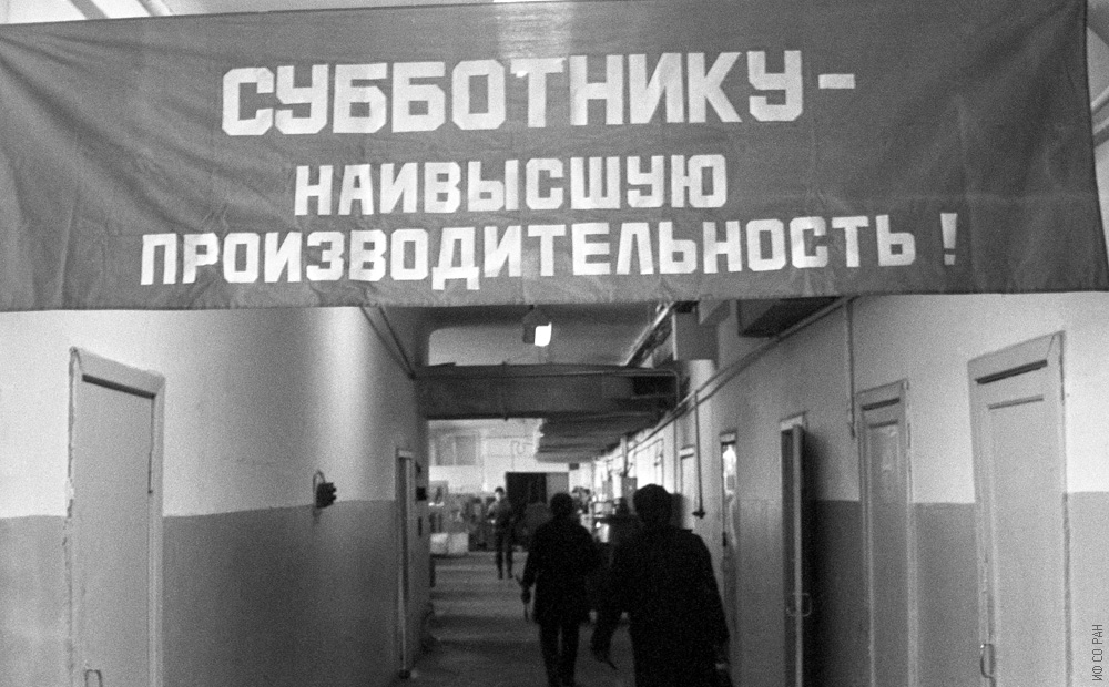 В день субботника в экспериментальных мастерских Института физики, 1984 г.