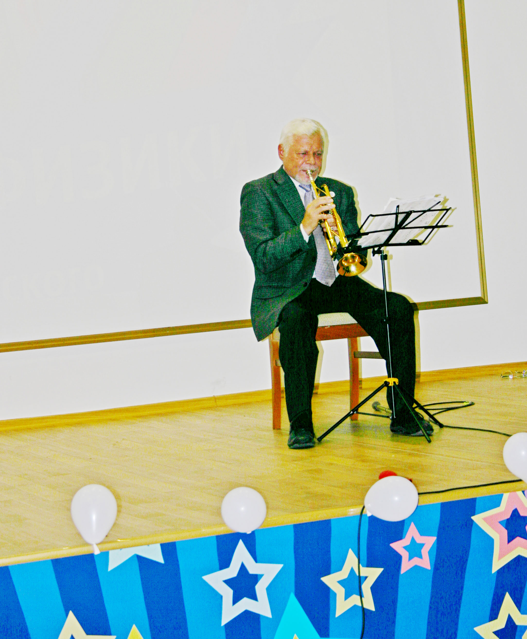 12 октября 2016 года. На празднике в честь 60-ия Института физики им. Л.В. Киренского Сибирского отделения Российской академии наук (ИФ СО РАН). Участник художественной самодеятельности профессор Беляев Б.А., заведующий лабораторией электродинамики и СВЧ электроники института. Красноярск.