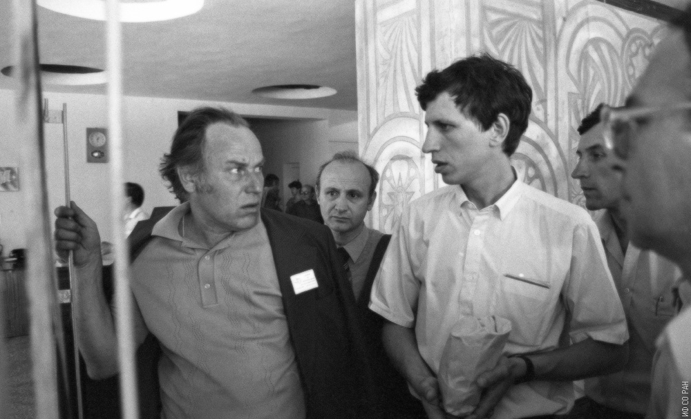 На втором Всесоюзном семинаре по функциональной микроэлектронике в Дивногорске в 1986 году. Семинар проведен лабораторией резонансных свойств магнитоупорядоченных веществ Института физики им. Л.В. Киренского Сибирского отделения Академии наук СССР (ИФ СО АН СССР) (заведующий лабораторией Г.А. Петраковский). Слева - Польский Анатолий Илларионович.