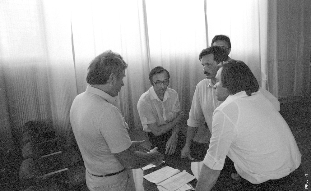 Слева направо: Ольховский, Соснин В.М., Васильев В.Н., Васильев А.А., сотрудники Института физики им. Л.В. Киренского Сибирского отделения Академии наук СССР (ИФ СО АН СССР), на конференции по функциональной магнетоэлектронике в г. Дивногорске (под Красноярском), организованной и проведенной сотрудниками лабораториеи резонансных свойств магнитоупорядоченных веществ (заведующий лабораторией Г.А. Петраковский) в 1986 году.
