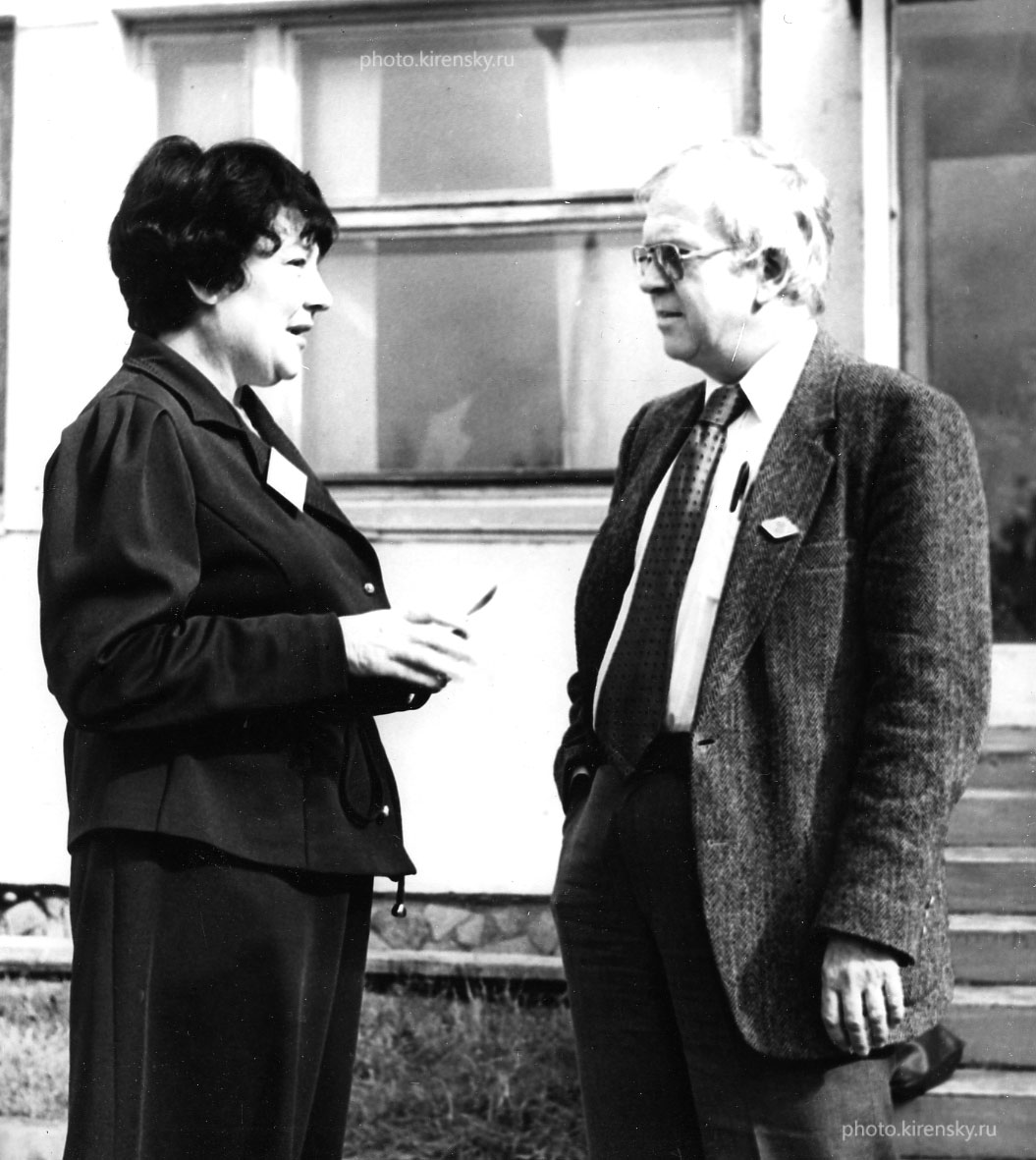 Александрова И. П., заведующая лабораторией кинетических процессов Института физики им. Л.В. Киренского Сибирского отделения Академии наук СССР (ИФ СО АН СССР) и Армстронг Р. Л. ученый Канады, на Международном симпозиуме-спутнике по ядерно-магнитному резонансу (ЯМР). Симпозиум был организован и проведен Институтом физики с 28 по 30 сентября 1987 года в поселке Шушенское Красноярского края.