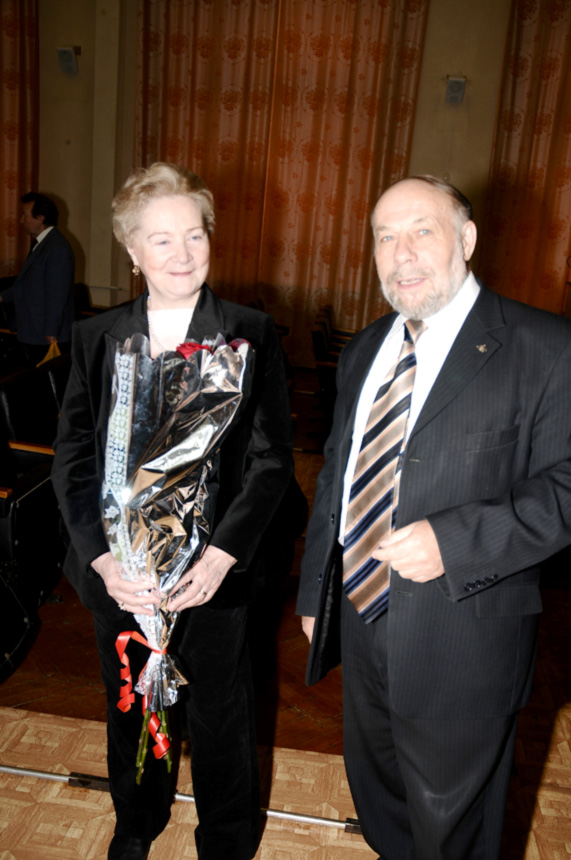 Т.Л. Овчинникова (дочь Л.В. Киренского) и ректор Красноярского педагогического университета Н.И. Дроздов, 9 апреля 2009 г.