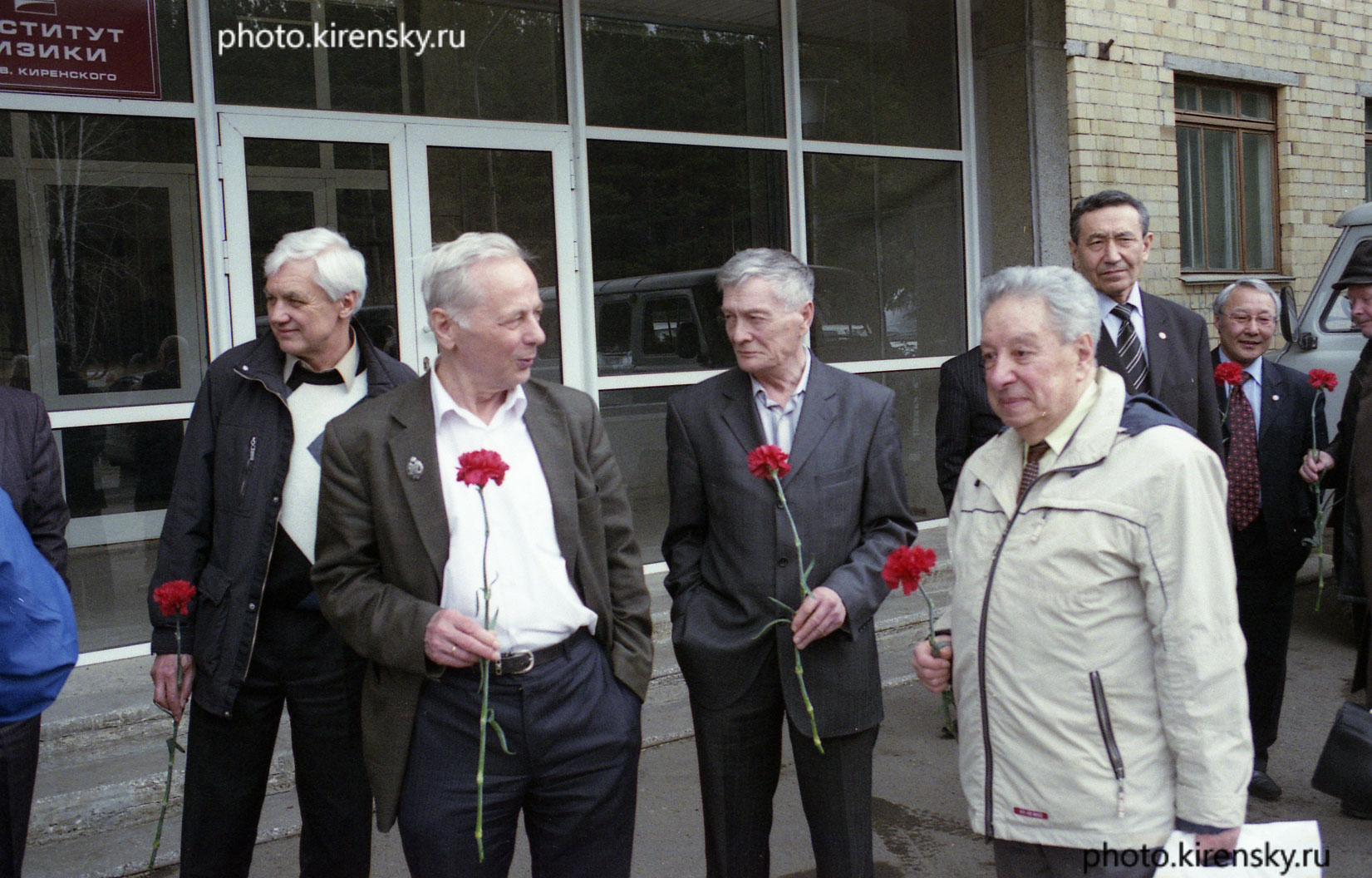 9 апреля 2009 года в Институте физики им. Л.В. Киренского Сибирского отделения Российской академии наук отмечали 100 лет со дня рождения академика Леонида Васильевича Киренского, организатора и первого директора института. На снимке - перед началом возложения цветов и венков к памятнику Киренского (он похоронен в Академгородке Красноярска на территории института, им основанного и носящего его имя). Слева направо: Панкрац А.И, Петраковский Г.А., Зиненко В.И, Лундин А.Г., Колодезников И.И., президент Академии наук Республики Саха (Якутия), Николаев И.Н., проректор Якутского государственного университета им. М.К. Амосова, Красноярск.