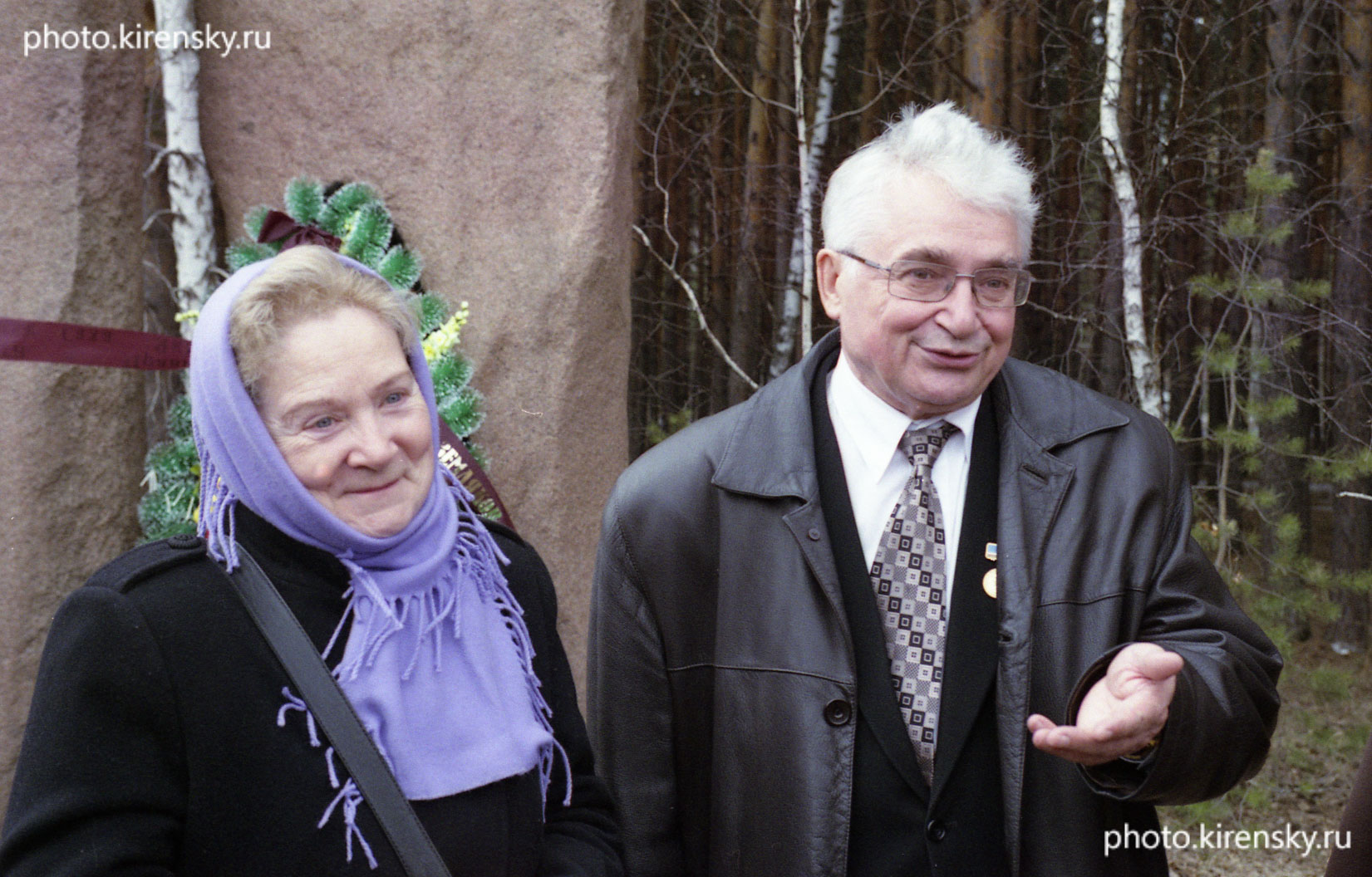 9 апреля 2009 года в Институте физики им. Л.В. Киренского Сибирского отделения Российской академии наук (ИФ СО РАН) отмечали 100 лет со дня рождения академика Леонида Васильевича Киренского, организатора и первого директора института. На снимке: после возложения цветов и венков к памятнику Леонида Васильевича (он похоронен в Академгородке Красноярска на территории института, им основанного и носящего его имя дочь Киренского Татьяна Леонидовна Овчинникова и Василий Филиппович Шабанов, председатель Президиума Красноярского научного центра Сибирского отделения Российской академии наук и директор Института физики. Красноярск.