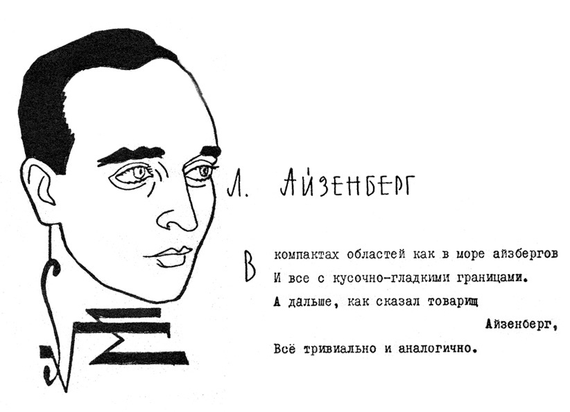 Дружеский шарж Айзенберга Л.А. из книги шаржей "Музей друзей", первая часть которой вышла в 1967 году. Авторами ее являются научные сотрудники Института физики Сибирского отделения Академии наук СССР (СО АН СССР с 1991 года - СО РАН) О.А. Баюков и Н.С. Чистяков. Книга вышла малым тиражом (всего 100 экземпляров) и моментально разошлась среди персонажей, сотрудников и была подарком авторов к юбилею института. В 1971 году вышла вторая часть книги (книги размещены на сайте).