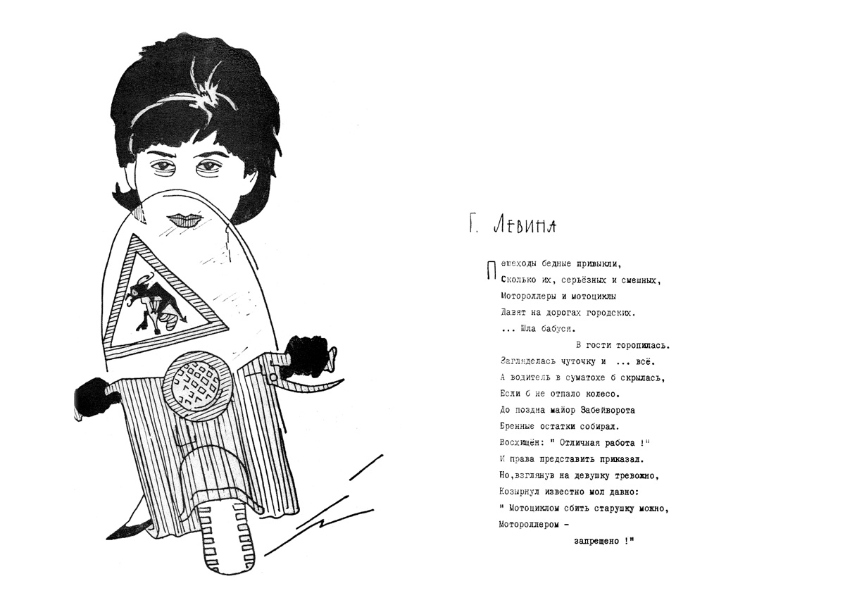 Дружеский шарж Левиной (Фиш) Г.И. из книги шаржей "Музей друзей", первая часть которой вышла в 1967 году. Авторами ее являются научные сотрудники института О.А. Баюков и Н.С. Чистяков. Книга вышла малым тиражом (всего 100 экземпляров) и моментально разошлась среди персонажей книги, сотрудников и была подарком авторов к юбилею института, 1967 год.