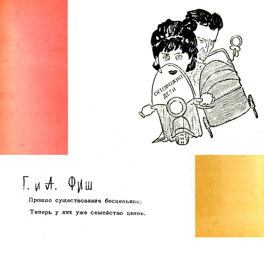 Дружеский шарж супругов Галины и Абрама Фиш из книги "Музей друзей", изданной научными сотрудниками института Олегом Артемьевичем Баюковым и Николаем Сергеевичем Чистяковым. Удивительная книжка дружеских шаржей и эпиграмм на сотрудников Института физики СО АН СССР. Она вышла в 1967 году к 10-летию начала работы института. Вышла небольшим тиражом в 100 экземпляров и распространялась строго по списку, лично в руки. Узнать себя на страницах книги смогли 48 самых ярких и заметных личностей молодого института. Позже (в 1971 году) вышла вторая книга под таким же названием. Что побудило их взяться за такой труд, авторы подробно изложили в предисловии к первой и второй книгам. Книги размещены на сайте.