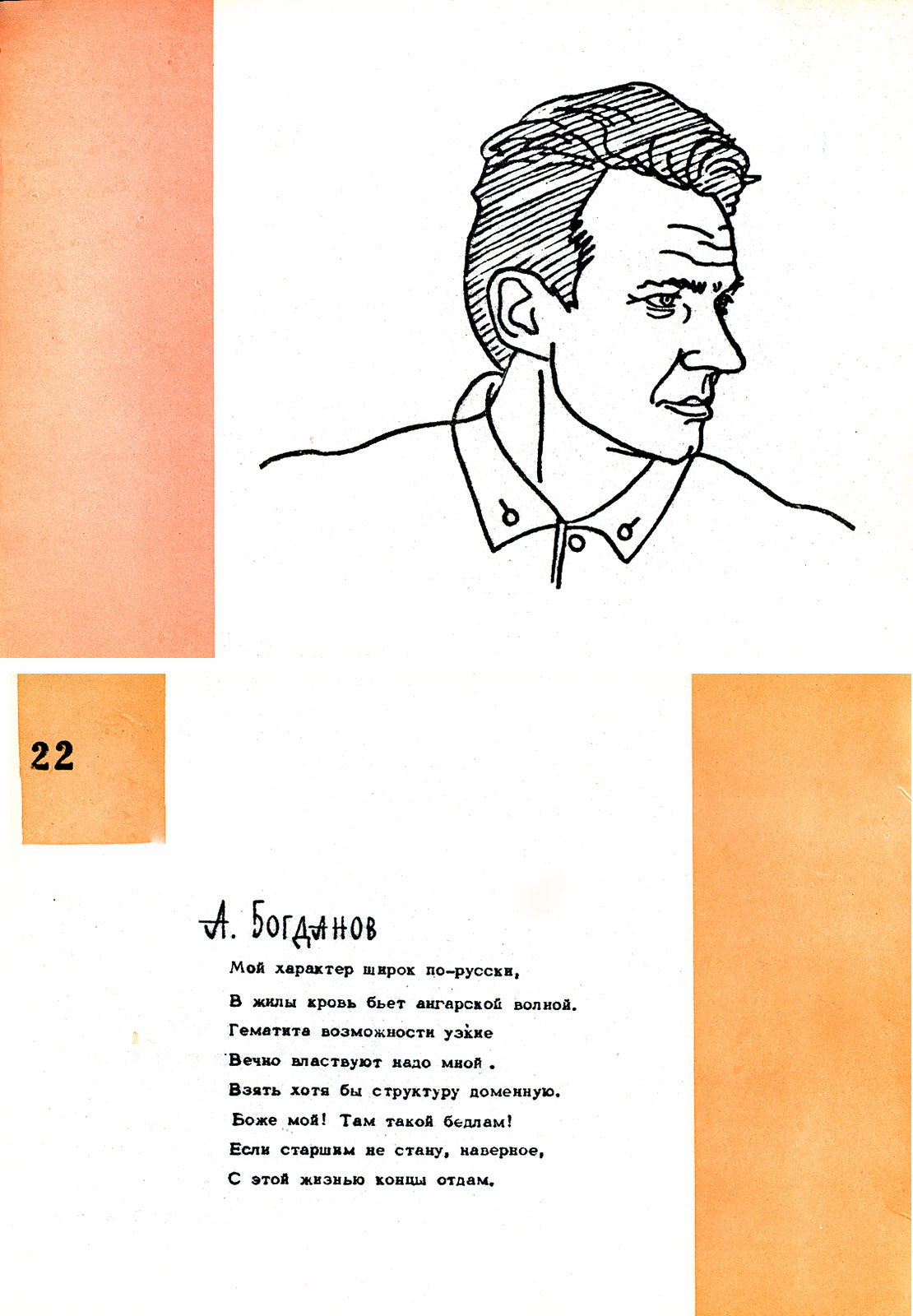 Дружеский шарж Богданова А.А. из книги "Музей друзей", изданной научными сотрудниками Института физики Сибирского отделения АН СССР Олегом Артемьевичем Баюковым и Николаем Сергеевичем Чистяковым. Удивительная книжка дружеских шаржей и эпиграмм на сотрудников. Она вышла в 1967 году к 10-летию начала работы института. Вышла небольшим тиражом в 100 экземпляров и распространялась строго по списку, лично в руки. Узнать себя на страницах книги смогли 48 самых ярких и заметных личностей молодого института. Позже (в 1971 году) вышла вторая книга под таким же названием. Что побудило их взяться за такой труд, авторы подробно изложили в предисловии к первой и второй книгам. Книги размещены на сайте. Красноярск