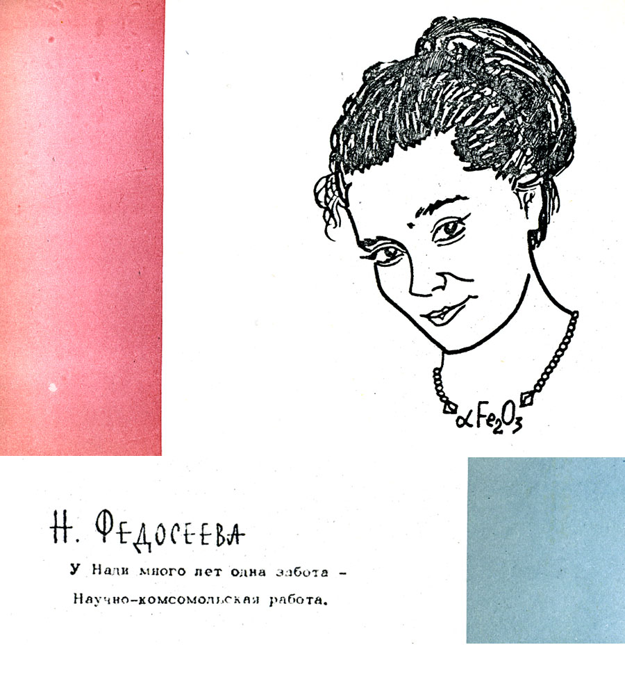Дружеский шарж Федосеевой Н.В. из книги "Музей друзей", изданной научными сотрудниками Института физики Сибирского отделения Академии наук СССР (ИФ СО АН СССР) Олегом Артемьевичем Баюковым и Николаем Сергеевичем Чистяковым. Удивительная книжка дружеских шаржей и эпиграмм на сотрудников Института физики СО АН СССР. Она вышла в 1967 году к 10-летию начала работы института. Вышла небольшим тиражом в 100 экземпляров и распространялась строго по списку, лично в руки. Узнать себя на страницах книги смогли 48 самых ярких и заметных личностей молодого института. Позже (в 1971 году) вышла вторая книга под таким же названием. Что побудило их взяться за такой труд, авторы подробно изложили в предисловии к первой и второй книгам. Книги размещены на сайте.
