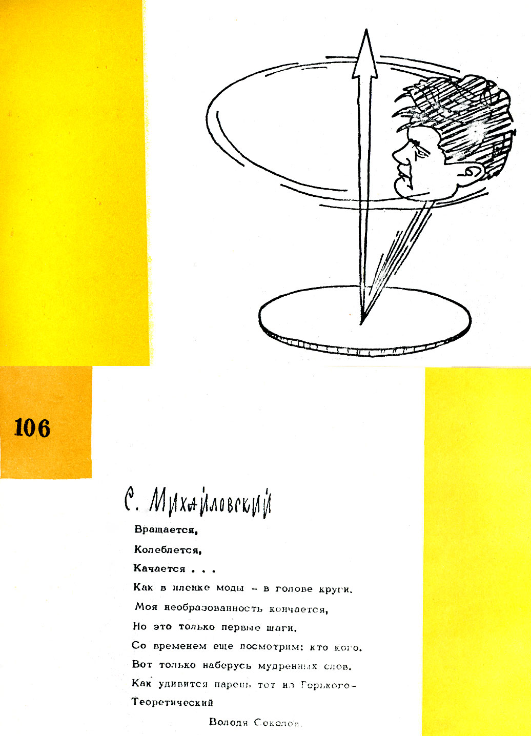 Дружеский шарж Михайловского С.С. из книги "Музей друзей", изданной научными сотрудниками Института физики Сибирского отделения Академии наук СССР (ИФ СО АН СССР) Олегом Артемьевичем Баюковым и Николаем Сергеевичем Чистяковым. Удивительная книжка дружеских шаржей и эпиграмм на сотрудников Института физики СО АН СССР. Она вышла в 1967 году к 10-летию начала работы института. Вышла небольшим тиражом в 100 экземпляров и распространялась строго по списку, лично в руки. Узнать себя на страницах книги смогли 48 самых ярких и заметных личностей молодого института. Позже (в 1971 году) вышла вторая книга под таким же названием. Что побудило их взяться за такой труд, авторы подробно изложили в предисловии к первой и второй книгам. Книги размещены на сайте